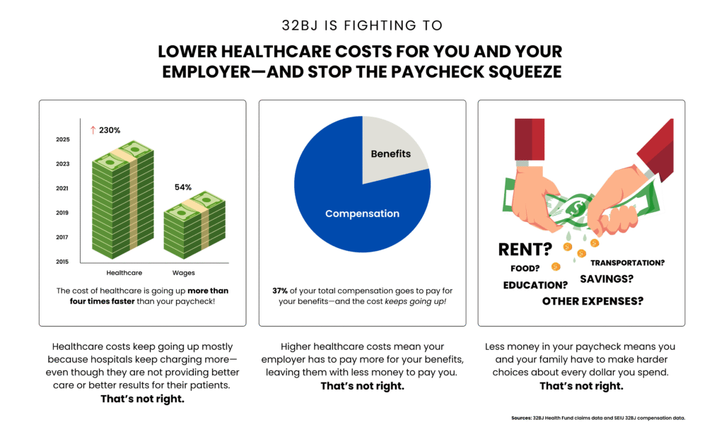 32BJ members are at the center of everything we do. We know that healthcare in the US is very expensive, which is why we are always looking for new and better ways to make sure you and your family can get top-quality healthcare that is affordable to you—whenever you need it.